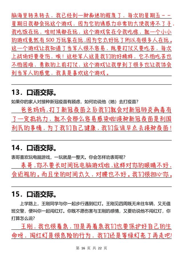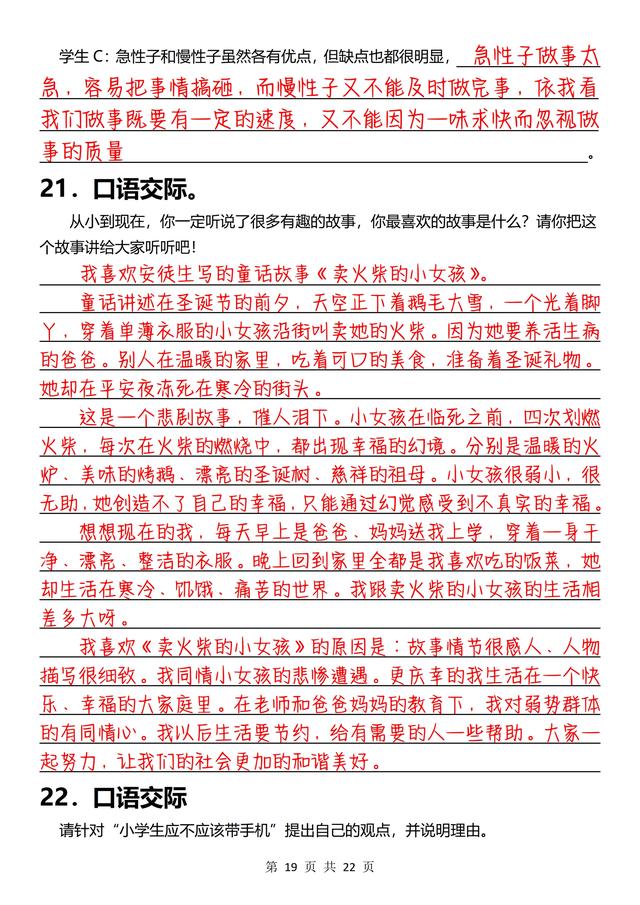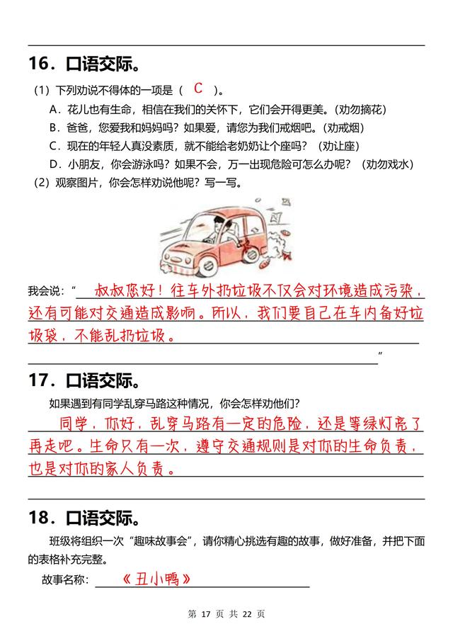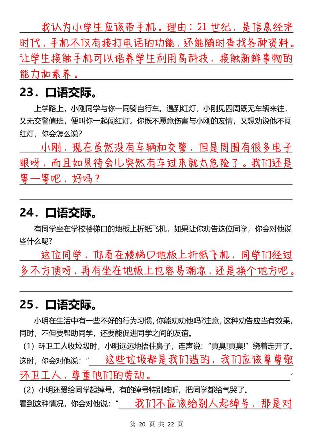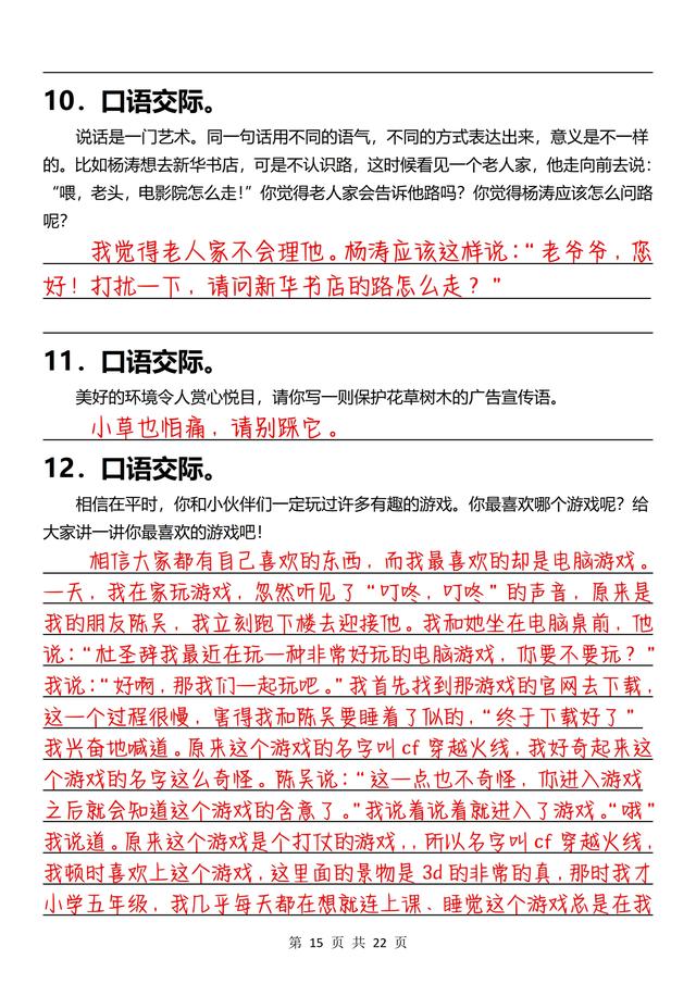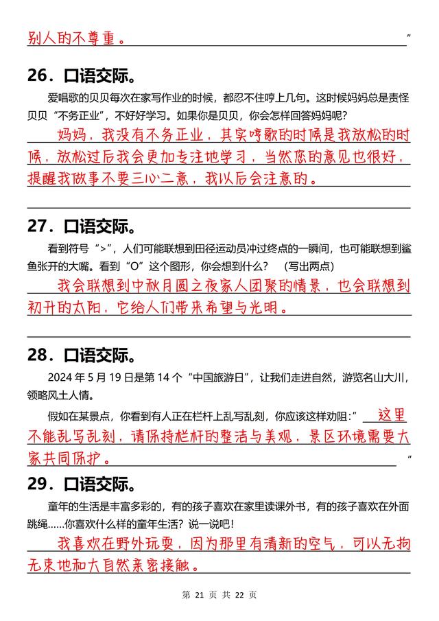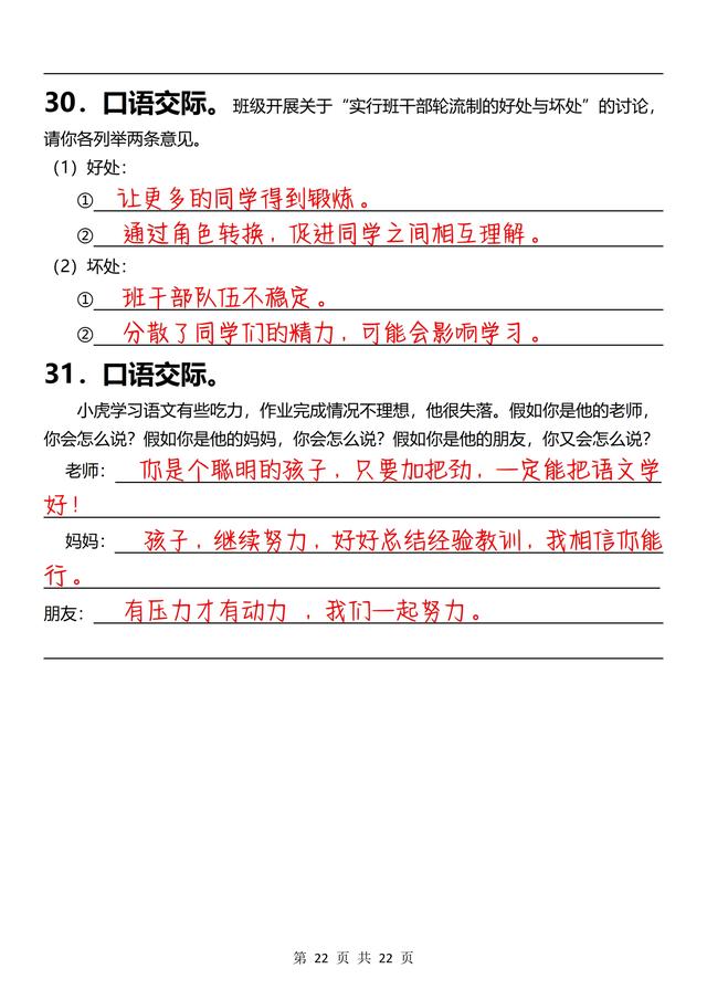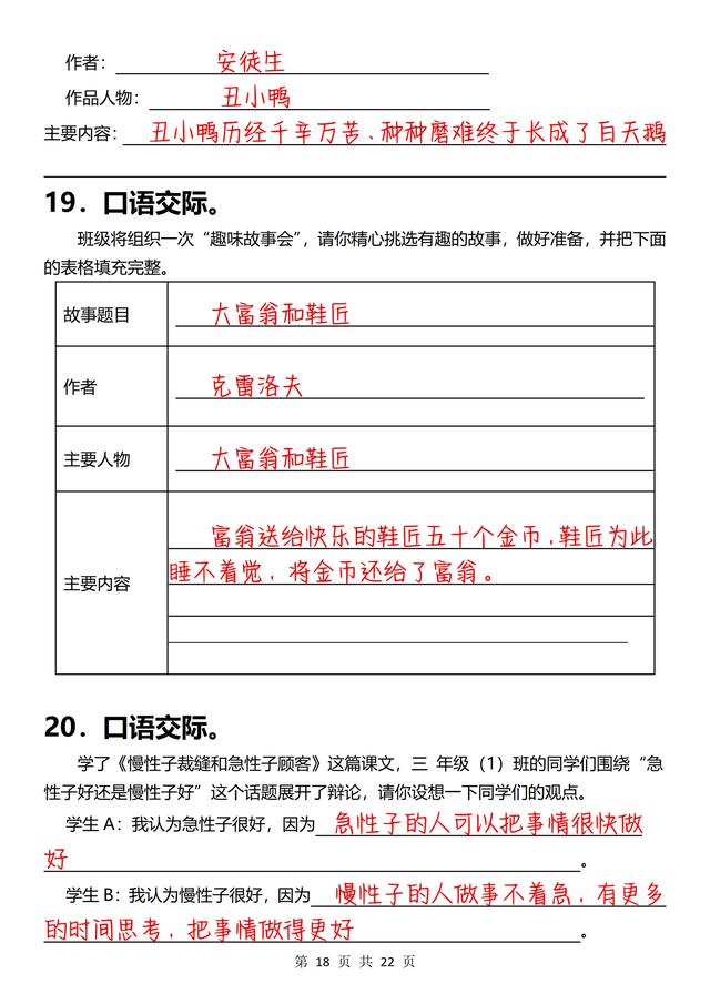 三年级下册语文,《口语交际》专项练习(含答案22页),收藏备用