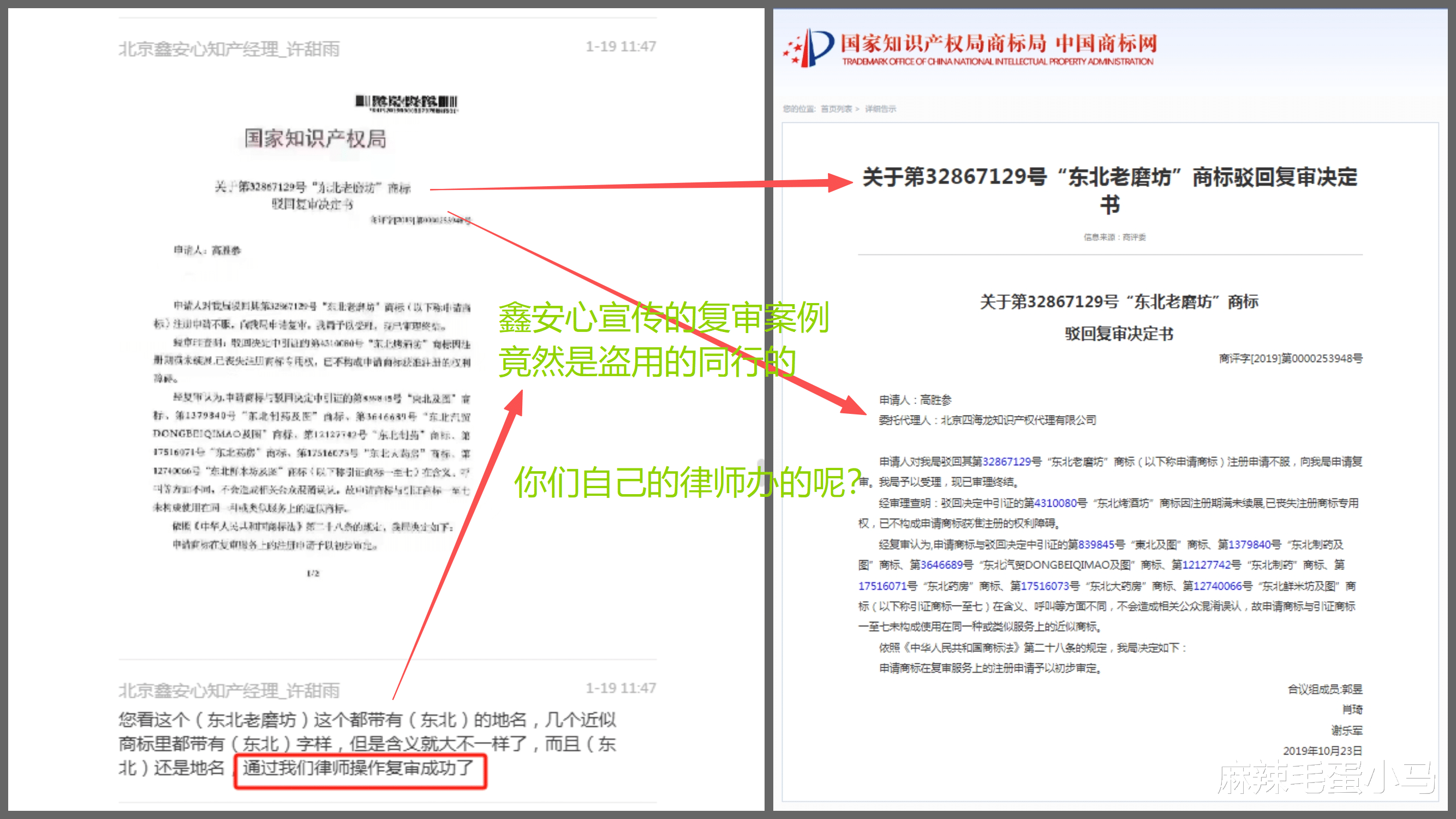 - “东北老磨坊”复审决定书,同样出自“北京四海龙”;