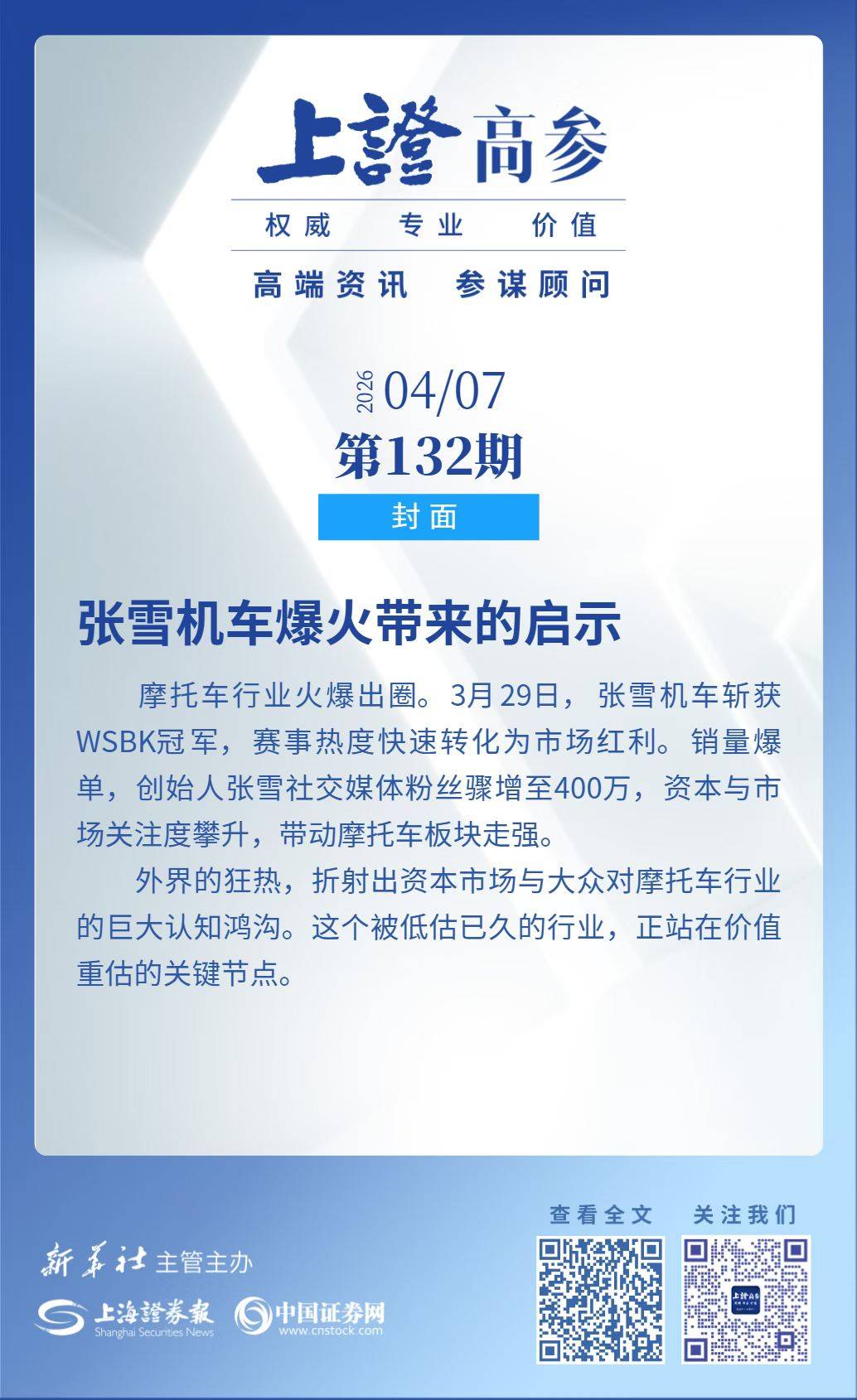 相关报道已刊发新华社 上海证券报《上证高参》封面。