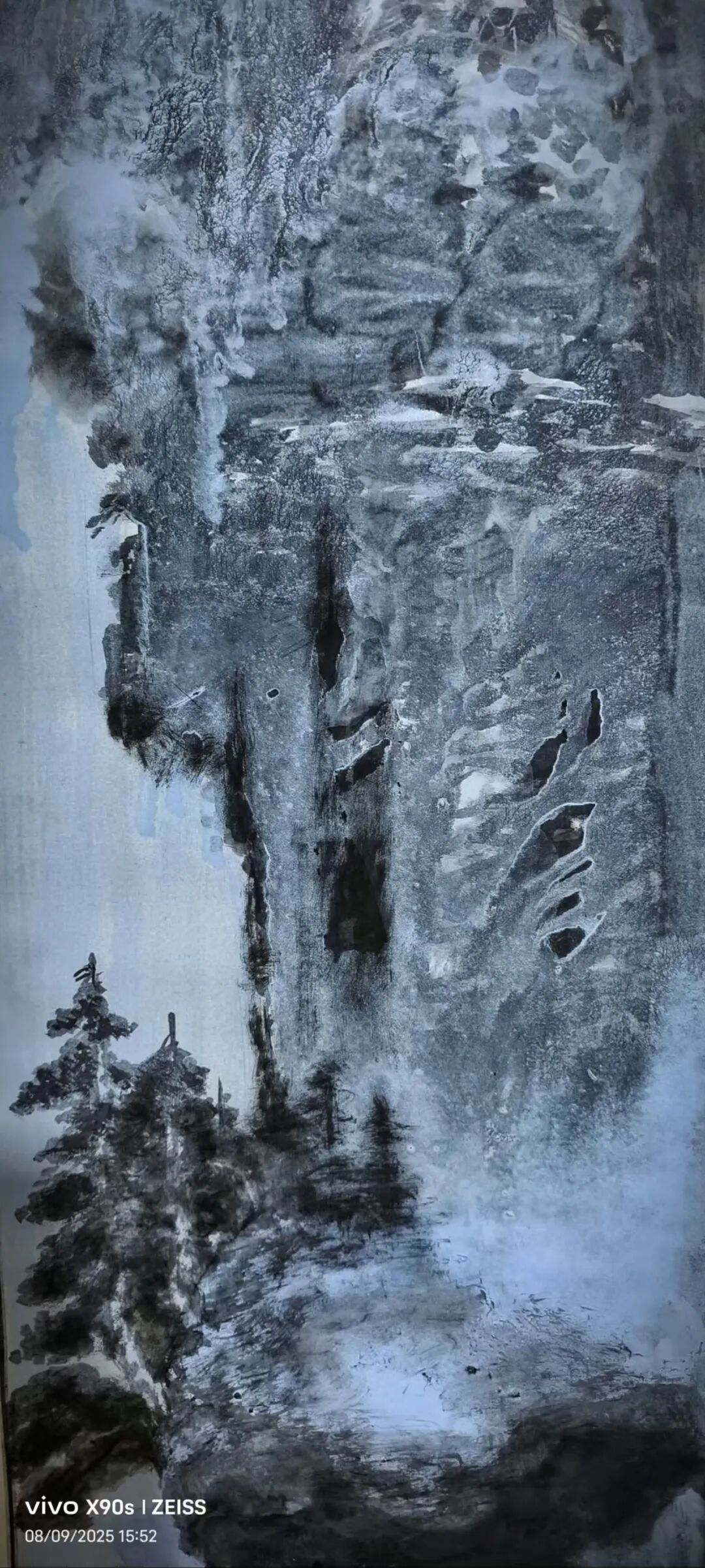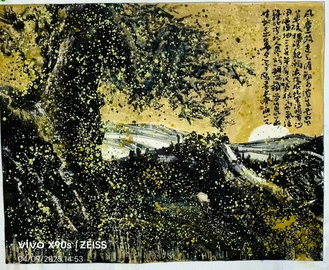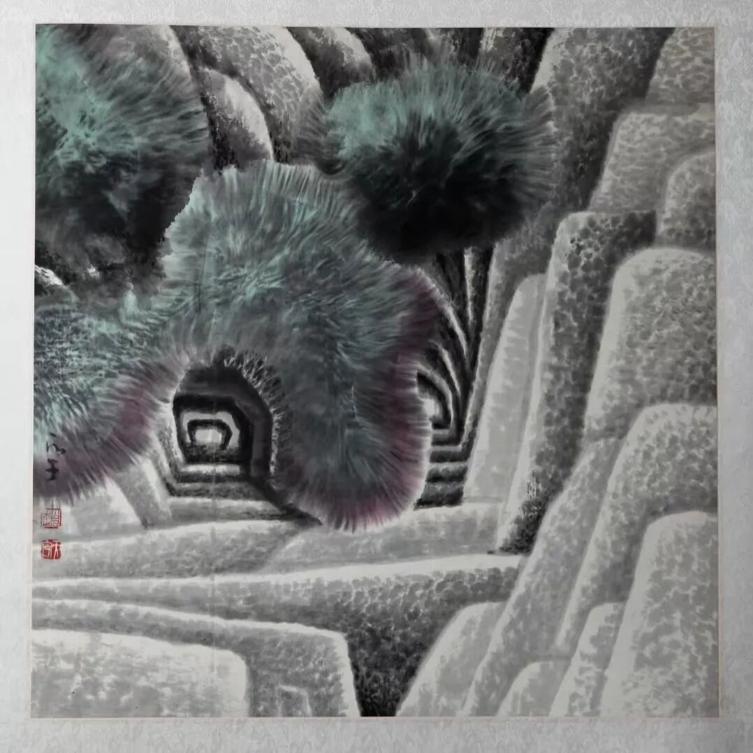 赵国庆,字天御,号天山阁,道名高義。毕业于新疆师范大学美术专业,工艺美术师。曾拜师过著名书法家费新我、王东龄。著名画家刘羲林、刘福芳、舒春光、徐登举。师从于古梅道人张汉。以钟鼎文、石鼓文为根基,学习金文大篆。研习大写意山水画,以古梅道人之精神,以万物为以得其所以然而造物书法,绘画。点、线、面的结合,聚成了情与爱的世界。万物遵循自然规律,书法以古人表现对线的变化与探索情感传递心境,山水画笔墨当随时代通过“人化自然”的绘画展现阴阳传递的宇宙。“自然本真”是准则,“虽由人作”“宛自天开”的意境,“逸笔草草”不求形似绘画观。