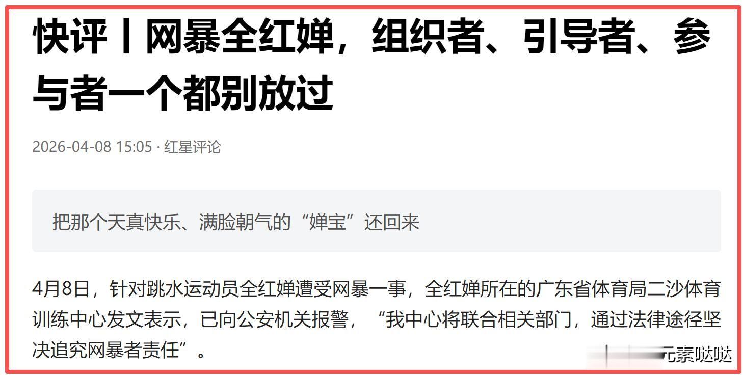 4月8日,“全红婵已报警”的词条毫无预兆地冲上了热搜榜首。很多人这才意识到,那些针对这个年轻姑娘的恶意,已经严重到了需要法律介入的地步。