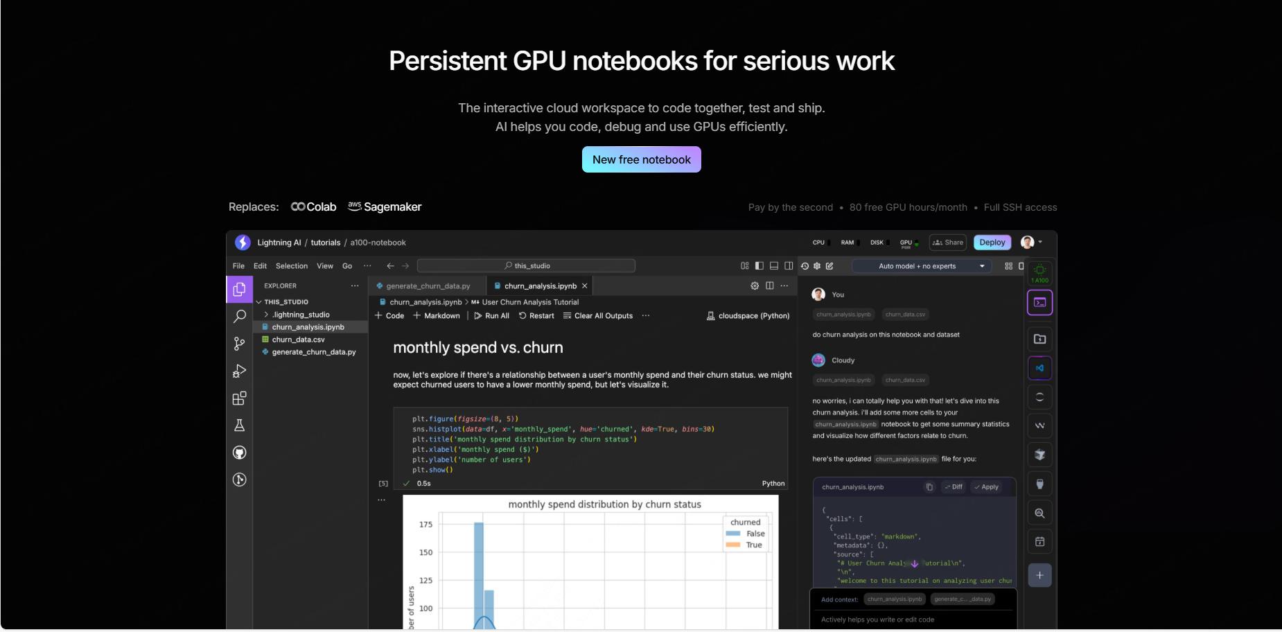 作为最好的AI开发平台之一,Lightning AI与分布式计算环境集成,使你能够在多个GPU或TPU上训练模型以获得增强性能。这种能力对于处理大型数据集和复杂模型、加速训练过程和提高模型准确性至关重要。