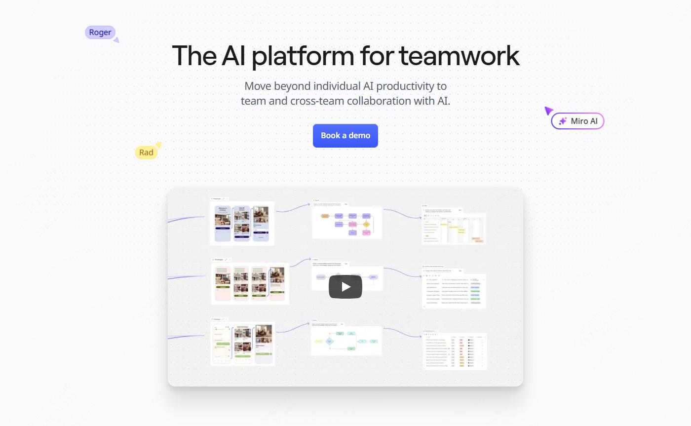该工具特别适合敏捷开发团队的作业流程,AI可以自动将用户故事生成流程图,或将会议录音转录为可视化的决策树。Miro AI与Atlassian、Slack等200+企业工具集成,能够将分散的数据自动汇聚为可视化仪表板。