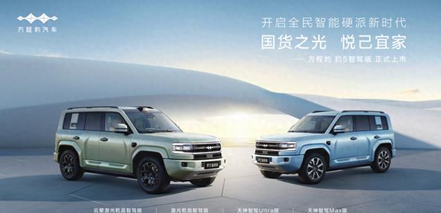 2025年2月21日方程豹 豹5智驾版正式上市,新车共发布4款车型,指导售价23.98万元--32.98万元。动力上,搭载1.5T的比亚迪超级混动系统,综合续航可达1200公里。