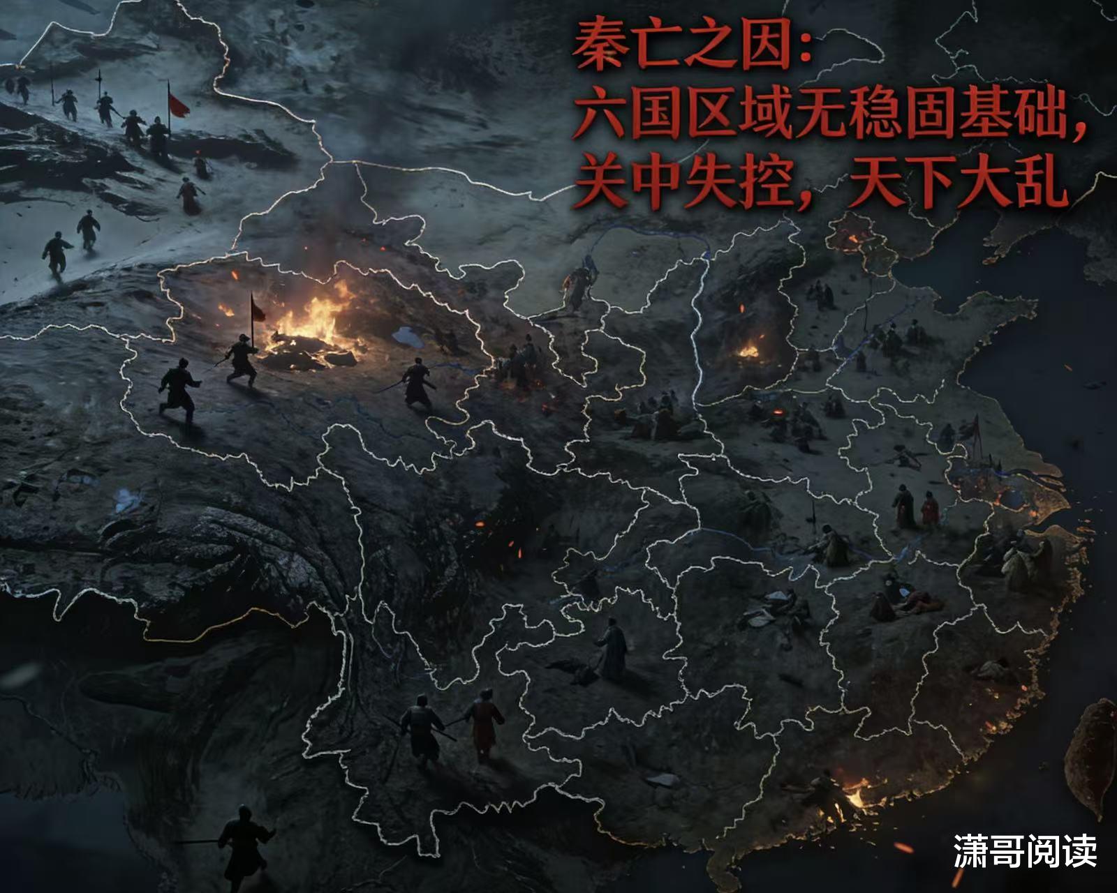 秦灭亡的原因也是在原有六国的区域内无法建立稳定的政治和军事基础,最终导致关中地区的失控,天下大乱。