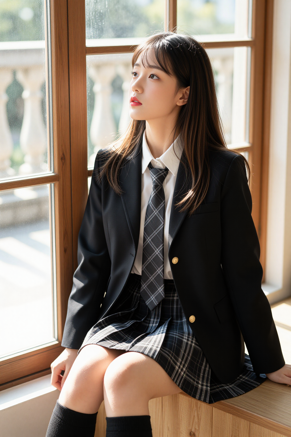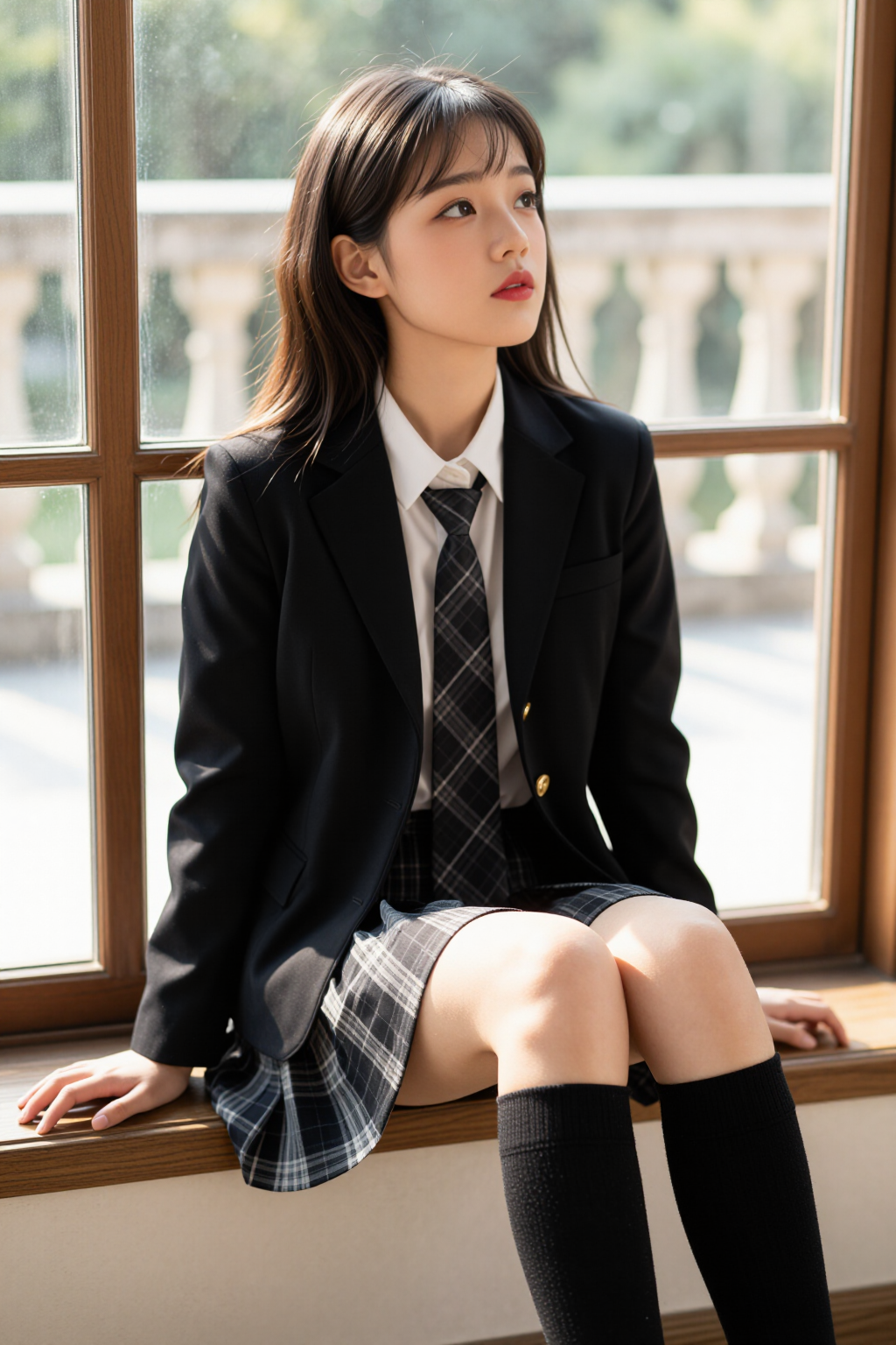 简约黑色系穿搭低调又耐看,日常出行与通勤都十分适配。整体以利落版型为主,挺括的黑色外套能够很好地修饰身形,挺括的面料自带质感,既不会过于紧绷,又能勾勒出利落的线条。内搭选择简约的白色衬衫,干净清爽,搭配同色系格纹领带,增加了整体的层次感,避免了单调。下身搭配格纹半身裙,经典的格纹元素注入了一丝活力,A字版型巧妙修饰胯部线条,搭配黑色中筒袜,既能保暖又能优化腿部比例,让整体造型更显修长。这套搭配经典配色不挑人,利落线条更显精神,不刻意不浮夸,日常穿着舒适又得体,轻松打造干净大方的形象。搭配时选合身不紧绷的版型,注重面料垂感,保持整体色系统一,就能穿出简约高级的质感。