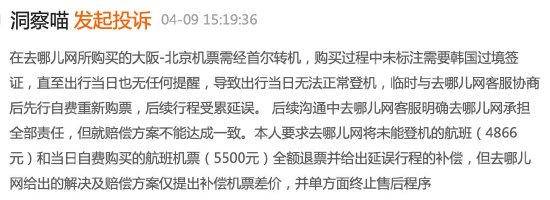 去哪儿网未说明转机需签证致无法登机,客服称非平台原因投诉几次