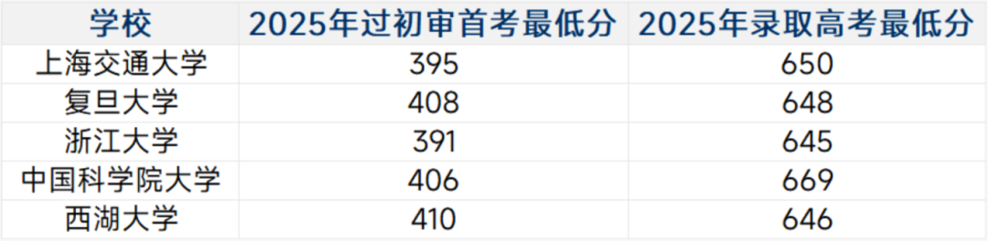 其中浙大无笔试,初审入围后直接面试,其热门专业(人工智能、机器人工程等)初审入围首考分数多在 420 分以上,考生可针对性对标。