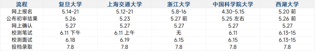 上交、复旦为「笔试 + 面试」(笔试偏竞赛难度,上交重数理化、复旦重综合能力);