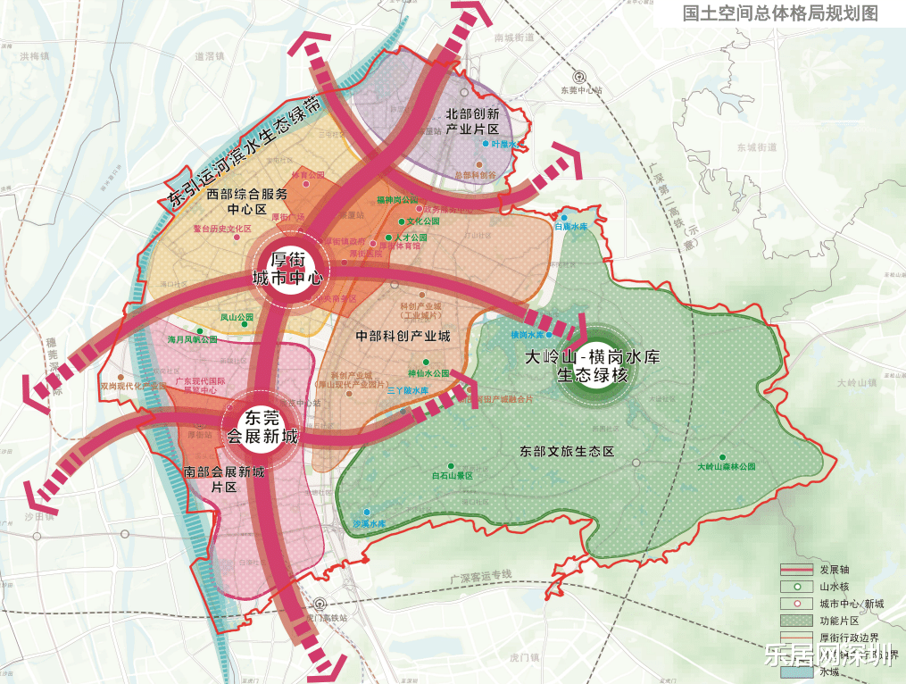 在最新公布的《东莞市国土空间总体规划(2021-2035年)》,东莞“一主两副六片区”规划中,中心城区与滨海湾副中心双核驱动。