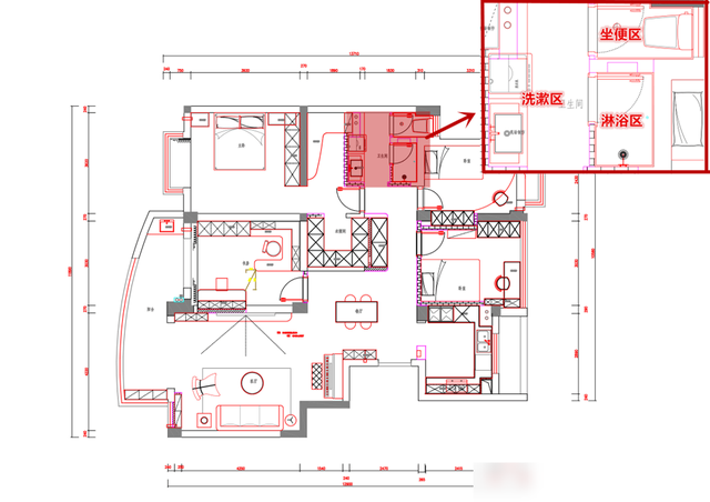 从“乱成一团”到“动线丝滑”,关键设计细节全公开第一步:三分离卫生间“腾空间”业主家原本的卫生间做了三分离设计——用隔墙把洗漱区、坐便区、淋浴区彻底分开。