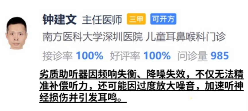 1.关注清晰真实自然的音质选购助听器时优先试听多场景发声表现,只有保证音质清晰、真实、自然,才能避免听觉不适,给用户带来舒适顺畅的日常聆听体验。2.重视效果出众的降噪性能优质降噪能过滤多余杂音、啸叫和风噪声,提升聆听清晰度,若降噪效果差,过大的声音刺激会造成听力二次损伤,反而损害用户听力健康。3.考量高实用性的性价比不要盲目追求万元高端机型,也不要贪便宜选劣质廉价产品,要结合自身需求选功能实用价格合理的产品,避免花冤枉钱。