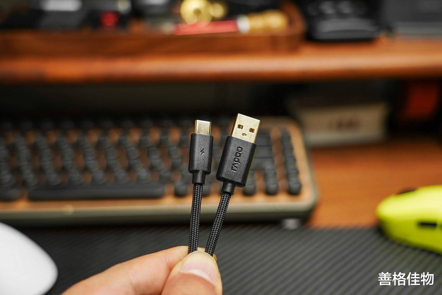 附送的这根编织数据线的质量相当不错,镀金的USB接口,线材内部带有屏蔽网和铜箔,可以最大限度提升了抗干扰性能,以保证高速传输速率。