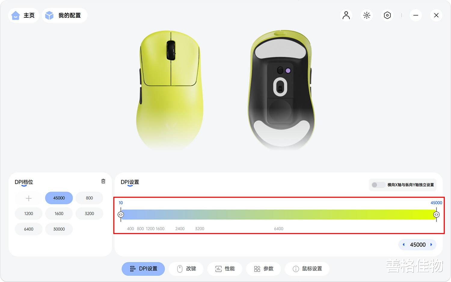 DPI:10-45000DPI/10步进(10-10050范围内)