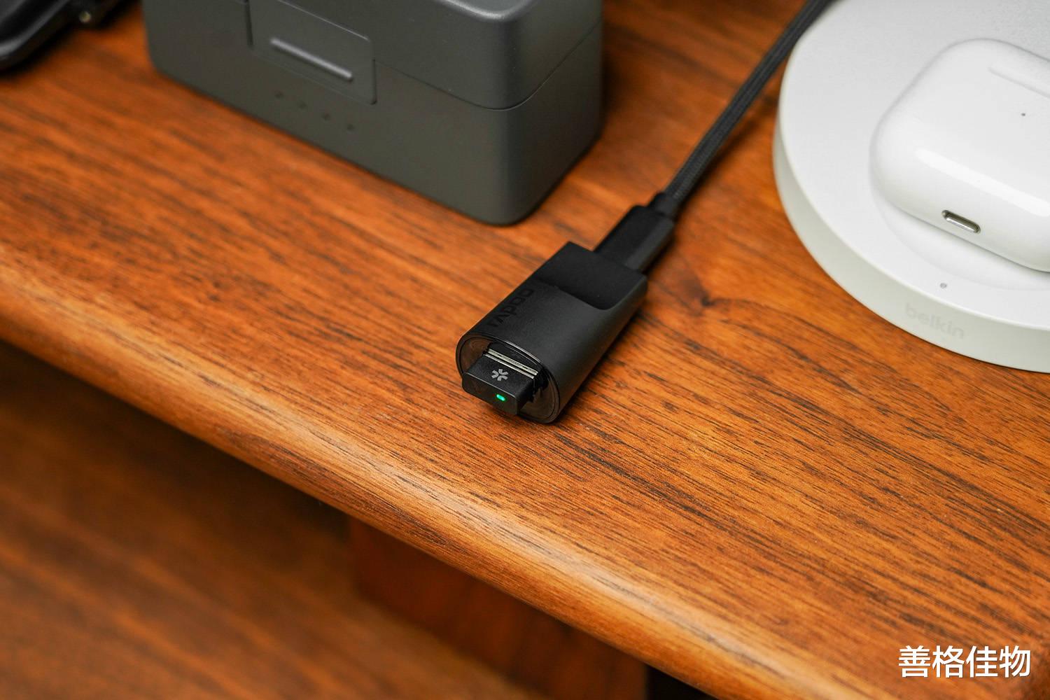 USB转换器和Nano 8K微型无线接收器的体积小巧精致,非常方便隐藏,接收器带有一个RGB指示灯,成功连接鼠标后,绿灯常亮显示,同时,这个指示灯还可以起到鼠标剩余电量提醒的作用。