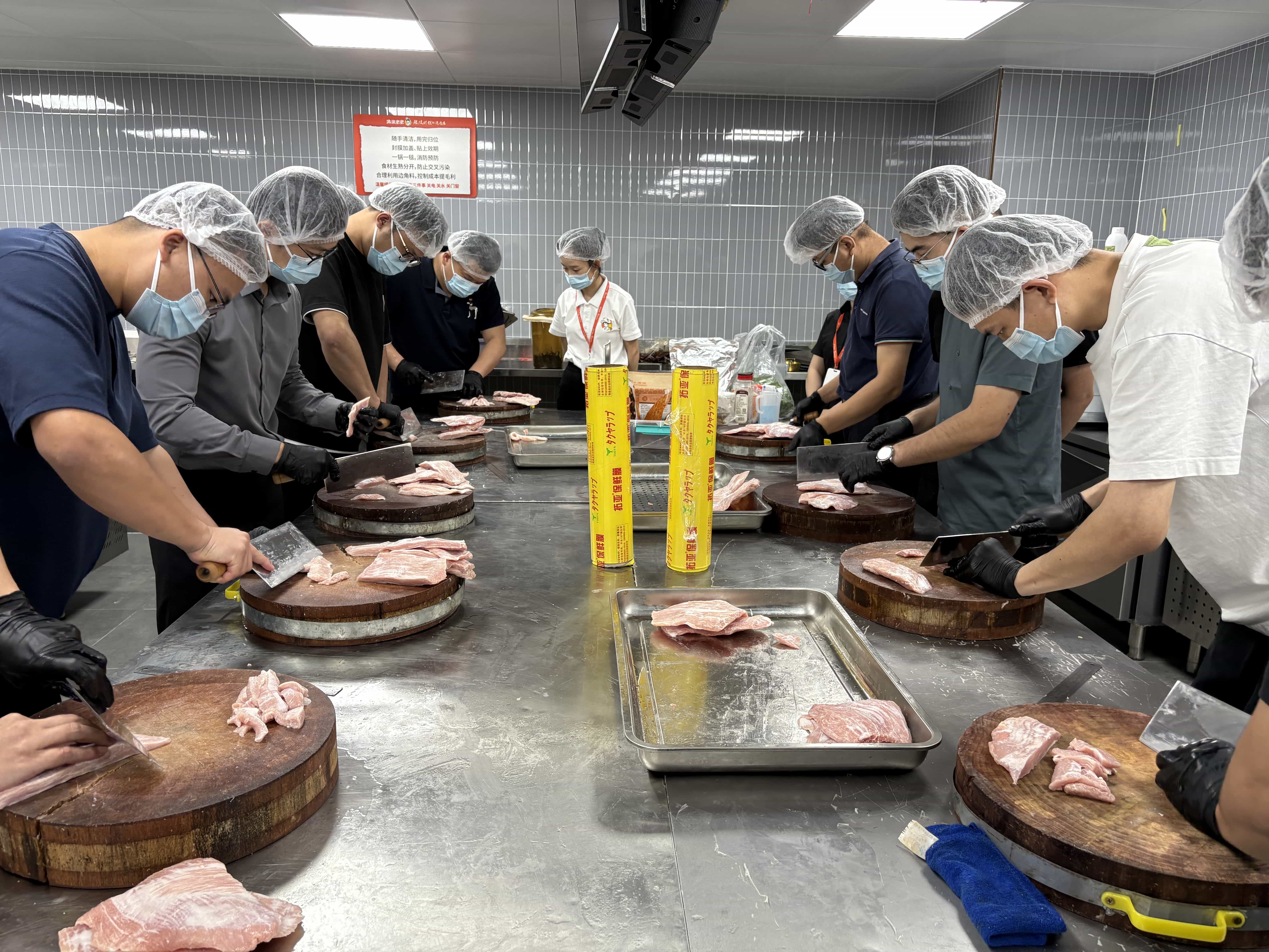 学员被分配至武汉区域直营门店,进行为期5天的全真实操。这种“练以致用”的模式,极大消除了新员工的实际操作盲区。以刨肉岗为例,学员需完整掌握从开市准备到收市清洁的全链条操作:包括设备检查与安全规范、肉类解冻与刨制标准(如肥牛厚度0.15-0.18cm、猪舌厚度0.18-0.2cm)、8款菜品的精准配料与摆盘出品、刨肉机的维护保养与清洁消毒等。员工需达到“1人通2岗”的要求,管理者则需实现全岗位通晓,在真实营业环境中打磨业务技能。