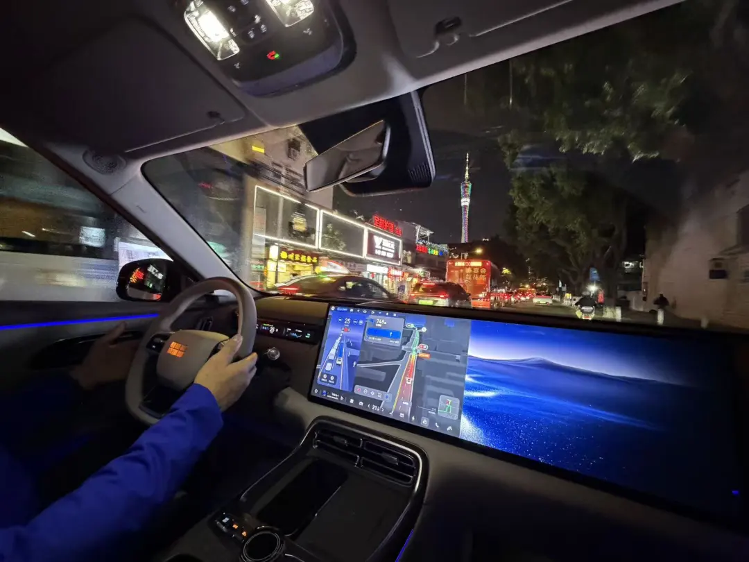 广州夜间路况堪称辅助驾驶“实战考场”,尤其是城中村区域,道路狭窄且错综复杂,建筑密度高,路边还乱停着电动车、私家车,偶尔有行人与摆摊商贩穿行。银河M9车长超5.2米、轴距3.03米,本以为开这样的大车穿行会很吃力,但市区NOA的表现超出预期。多传感器协同下,系统能精准识别路边违章停车和横穿马路的行人,自动小幅打方向左右避让,避让幅度克制,不会出现突然猛打方向的情况,全程没产生剐蹭风险。中途误入一条更窄的死胡同,我试了下它的“原地华尔兹”窄路掉头功能,借助转向系统与动力系统的协同控制,不用反复倒腾,一次就完成掉头,省去不少时间,但操作时一定要留意周围行人,保持注意力集中。
