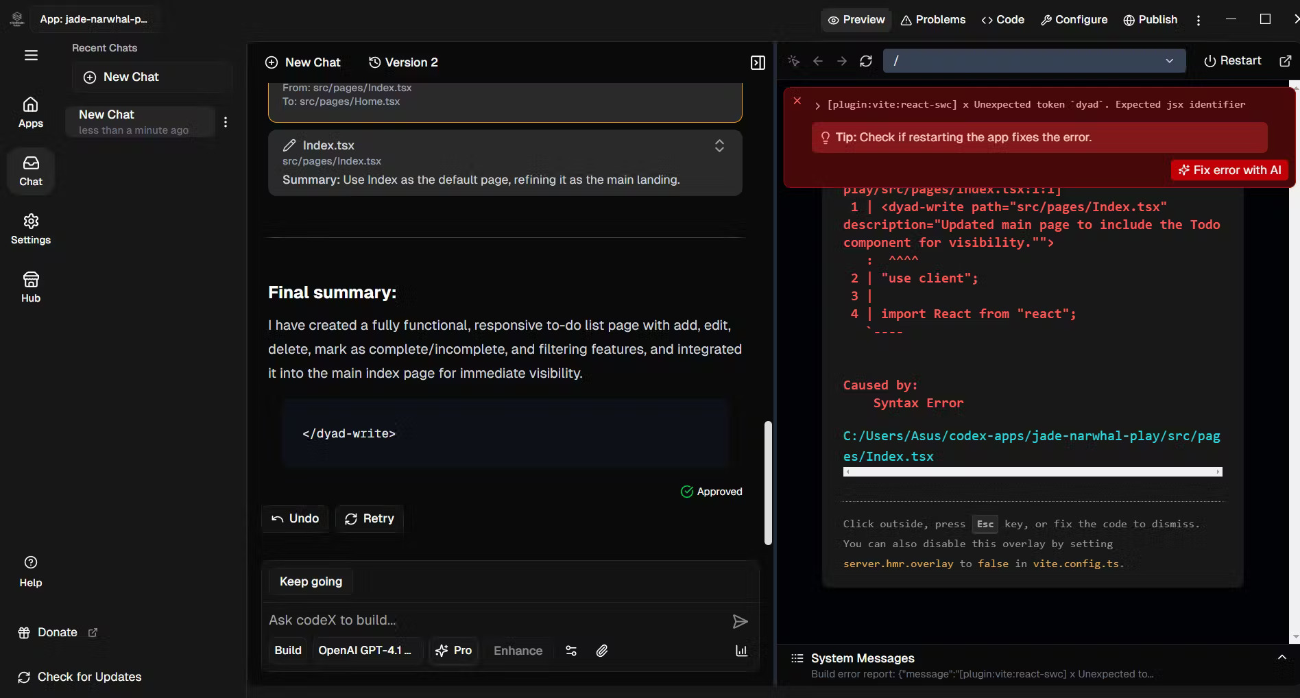 不稳定与不足:理想很丰满,现实有点骨感尽管 CodeX 的理念令人兴奋,但实际使用过程中也暴露出一些问题: