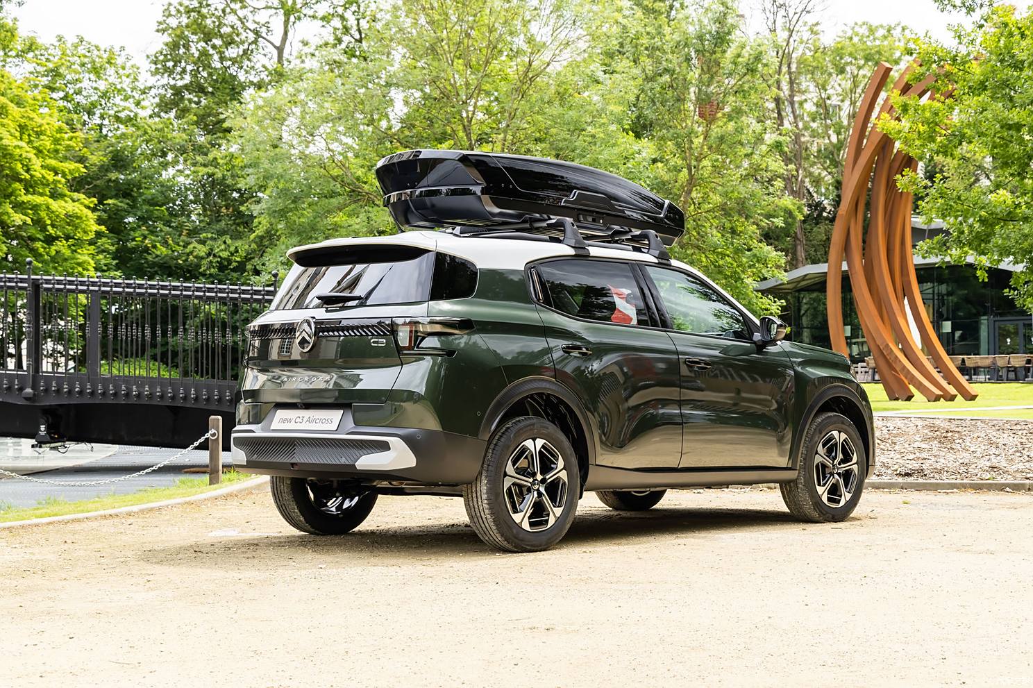 车辆外观上,C3 AIRCROSS采用了雪铁龙Oli概念车设计语言,前脸饰以标志性的C型日间行车灯和全新LOGO,辅以金属饰板点缀的前包围,线条平直。车身配有双色车顶、黑色车顶行李架、传统造型车门外拉手、C型尾灯等设计元素,尾灯采用三段式的C字造型,与中间的贯穿式黑色饰条相得益彰。车身尺寸方面,长度4.39米,宽度1.79米,轴距2.67米。