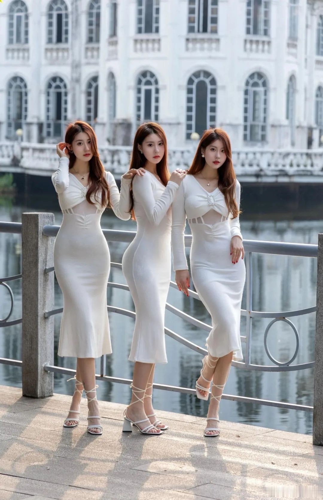 在这幅画卷中,三位白衣飘飘的三胞胎姐妹成为了最亮眼的风景,她们犹如落入凡间的仙子,带着与生俱来的美丽与优雅,静静地诉说着属于她们的故事。