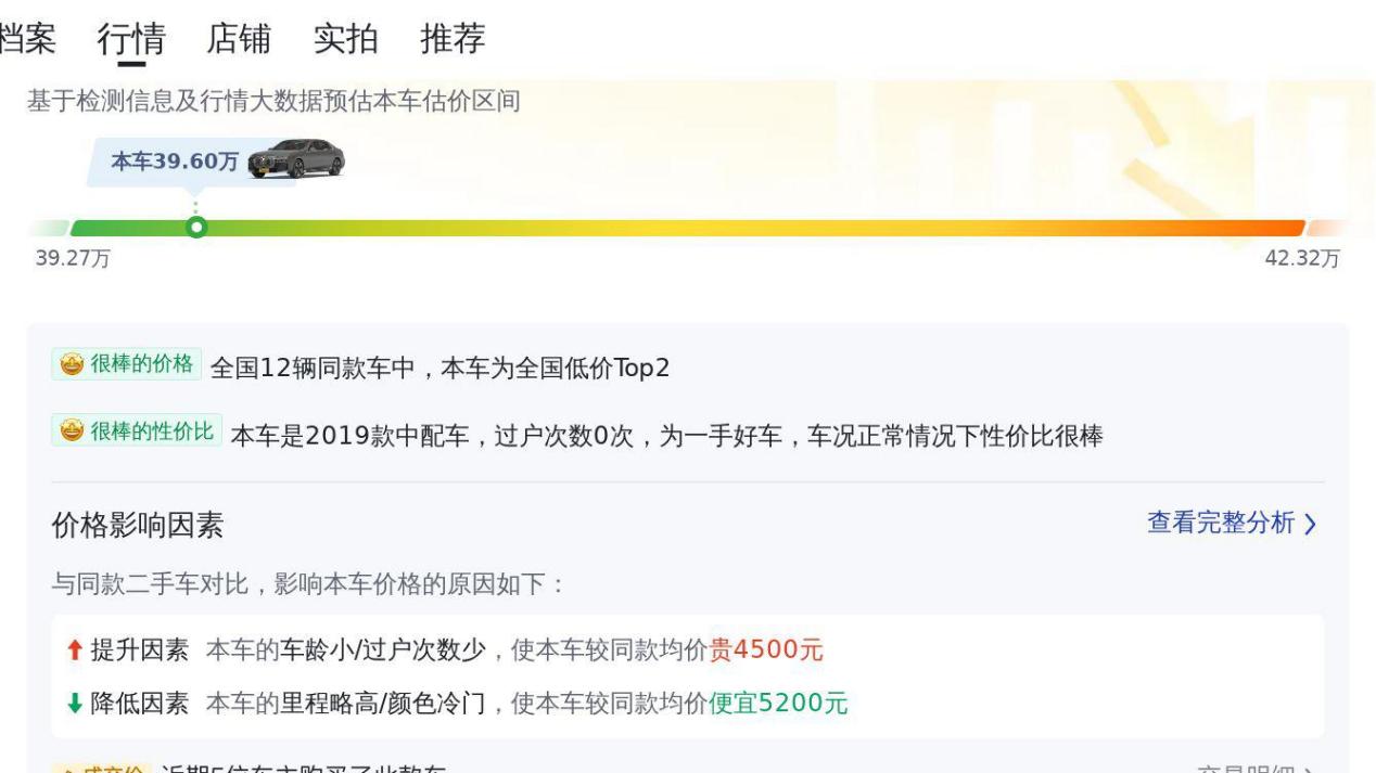 我们再来看看市场行情。根据一些二手车平台的数据,同款车型在不同地区的售价略有差异,大致在35万到45万之间。这辆车的售价为39.6万,处于市场平均水平。不过,价格并不是唯一的参考因素,车况、配置、里程等因素同样重要。