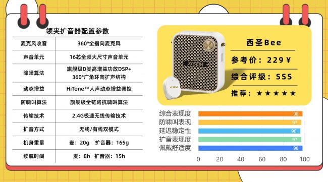 安利品牌1:西圣bee领夹扩音器推荐指数:★★★★★推荐语:扩音器里的硬核王者,性能天花板级存在!