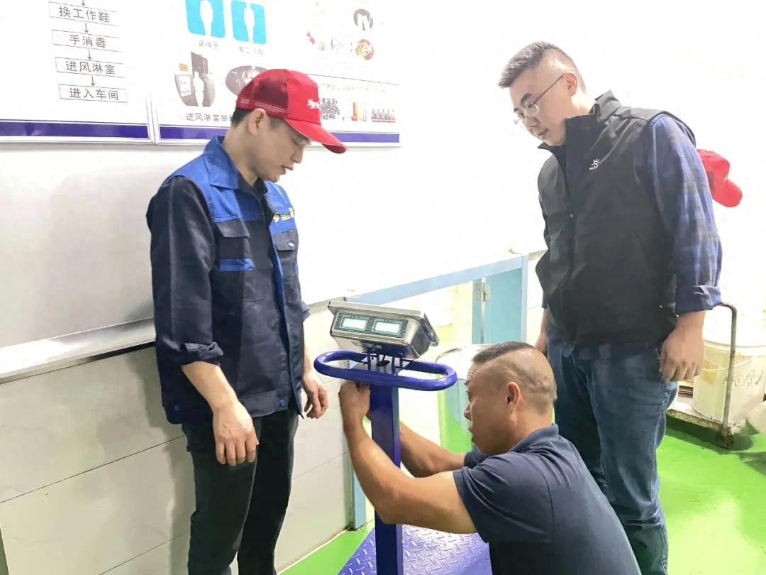 在乡里娃食品有限公司生产车间,工作人员直奔原料检测、成品包装等关键环节,重点对企业使用的电子天平、定量包装秤等计量器具进行现场检定。针对部分仪器存在的微小误差,工作人员当场调试校准,并向企业计量负责人详细讲解日常维护要点,确保每台计量器具都符合国家标准。