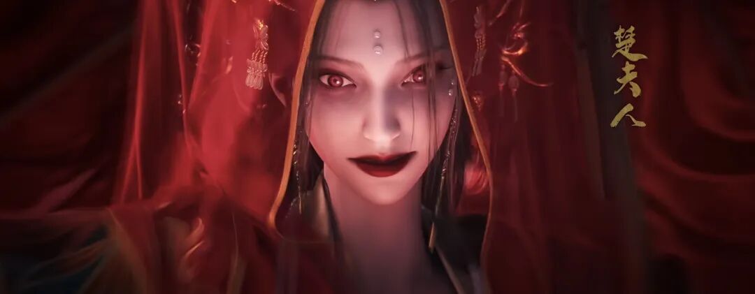 自阿良飞升之后,动漫剧情也是很快就推进到了嫁衣女鬼楚夫人篇章。楚夫人这个角色的登场压迫感还是挺强的,可以说实打实的中式恐