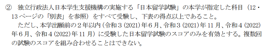 其他专业要求留考日语(含记述)270分以上,文科要求提交综合科目和数学265分以上,理科要求提交理科和数学265分以上。