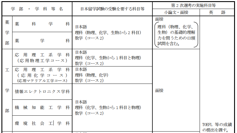 药学部药学科 · 药科学科要求留考日语(含记述)340分以上,理科和数学成绩要求在300分以上。