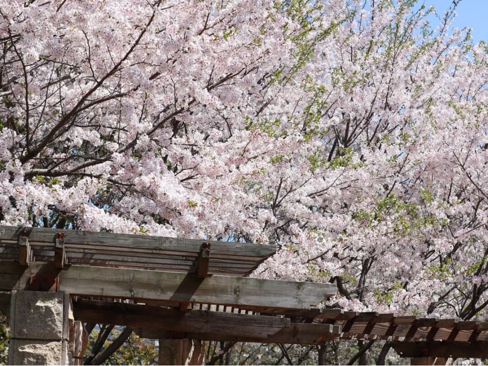 和韵园里,樱花在步道旁,小广场边开得正好,粉白缀满枝头,微风吹过,花瓣飘落,坐在廊下,可以消磨半日;南闸公园绿树成荫,步道旁偶见樱花盛开花朵,与园中草木相伴,安静而寻常,转角处,一树粉白悄然映入眼帘是春日赠予的温柔;渔人码头众福桥横跨随塘河 沿岸栽有樱花,花影倒映水中,与桥身、流水构成清丽的画面,午后阳光斜照,花瓣透亮 站在桥上望去,春意正好。