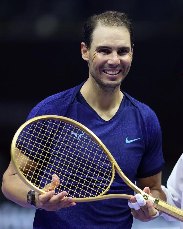 赛后,一个黄金打造的网球拍成为了焦点。六网大满贯的主办方为纳达尔准备了这份礼物,以此纪念他在网坛的辉煌成就。黄金网拍不仅象征着他的金色岁月,更代表了他对这项运动不可磨灭的贡献。金子打造的拍子,也许并不会真的用在球场上,但它却是对纳达尔精神的最佳诠释——纯粹、坚韧、不屈。
