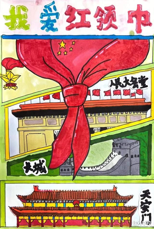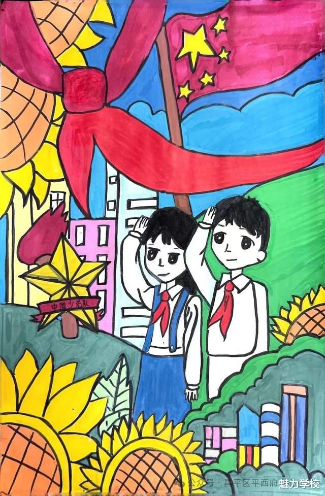 建队日如约而至,平西府中心小学少先队员们以笔为媒,将对组织的赤诚与对未来的向往,凝注在一幅幅作品中。色彩在笔下流淌,勾勒出队旗飘扬的模样;创意在版面绽放,既传递着队员们对少先队的深厚热爱,更展现出新时代少年昂扬向上的精神与逐梦前行的朝气。