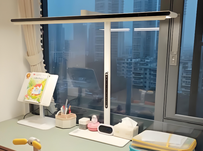 功能上支持入座感应、智能感光,并可接入米家APP或语音助手,使用体验偏向省心。但它同样采用直发光结构,光线集中度较高,近距离或直视灯头时,眩光问题比较明显,对光线敏感的孩子需要通过降低亮度或调整角度来缓解。