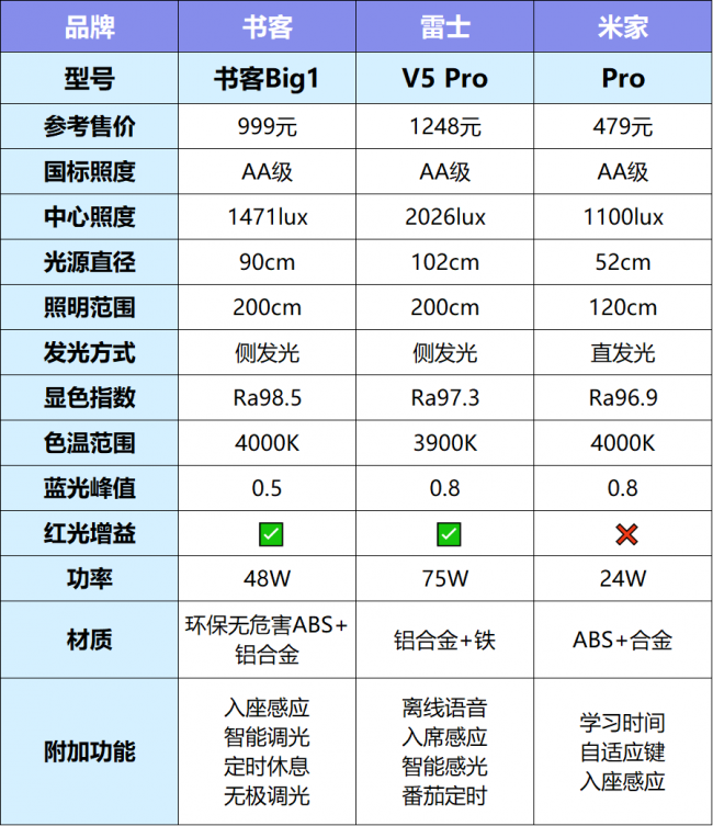 如果更看重真正长期护眼效果,书客Big1在光谱结构、红光补偿和防眩光控制上的优势非常明显,属于从底层视觉健康出发设计的产品;米家Pro则更适合预算有限、对智能生态有需求的家庭,但在光线舒适度上需要一定妥协。