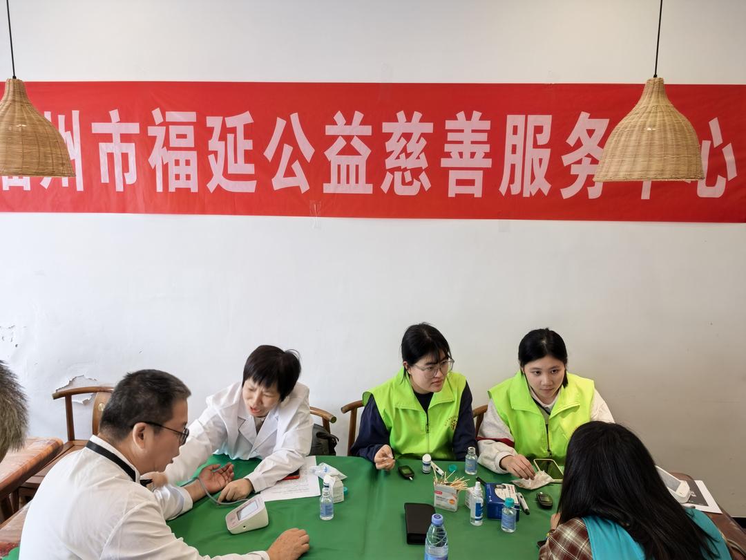 福建省妇幼保健院苏彦钊、千金药业福建医疗赋能中心刘畅、林维锶、千金药业零售赋能中心、何顺海为当地老人义诊。