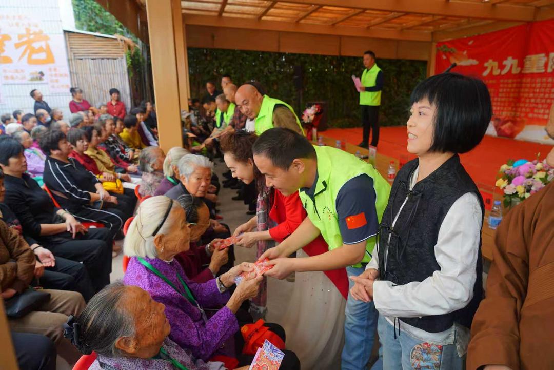 福州南台三公主祖庭副主任 林庭语 女士与当地老人共同庆祝重阳佳节。