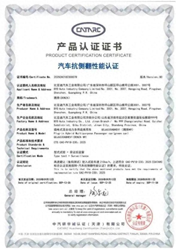 2026 款腾势 N9 在高速避让(鱼钩测试)中再创佳绩,以 210km/h 的时速顺利通过且全程不侧翻,不仅斩获中汽研权威认证,更第三次打破世界纪录,重新定义大型 SUV 安全天花板,让世界见证中国汽车科技的安全新高度。