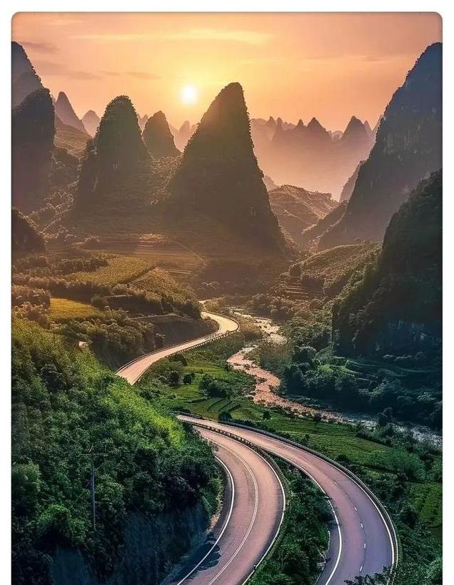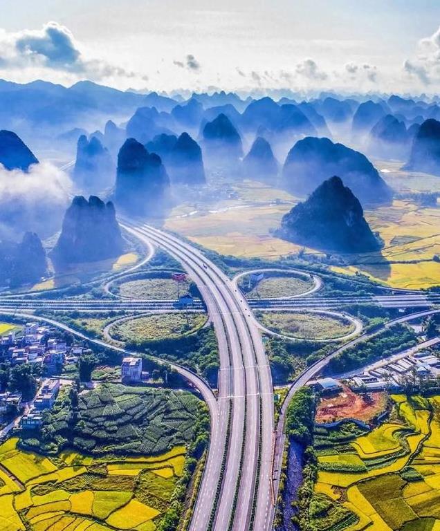 沿途尽是美景,一路都可以看到湛蓝的天空,奇特的喀斯特山川,清新的南国田园,青渺的云雾,和谐的融合在一起,峰峦起伏,构成一幅令人惊叹的壮丽画卷...