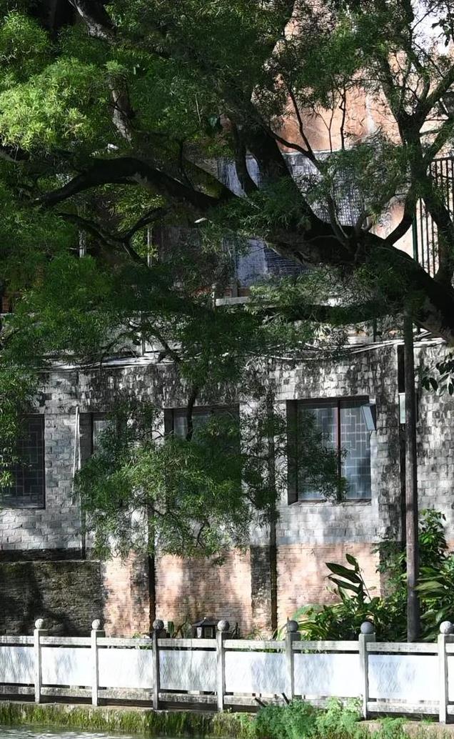 在一片翠绿之中,除却Plus版的崖壁大字,最显眼的莫过于通体朱色、龙头飞檐的丹桂塔。塔身在一潭碧水中凸起的大盘石上,周边配青云桥引渡,寓意平步青云。下午时分,青云桥上树影婆娑,又是一处出片的好地方。