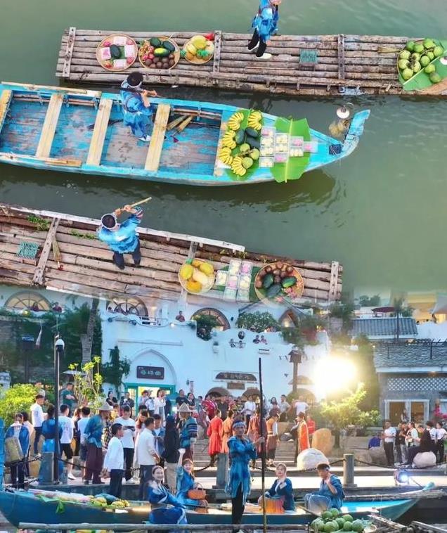 身着民族服饰的阿姐、笑眯眯的阿奶、卸货的阿叔,他们在摊位忙前忙后,热情地招呼着每一位顾客。蔬菜、糕点、鸡鸭,菜市场很小,小得行人需排队而行,却装下了那坡人的生活。