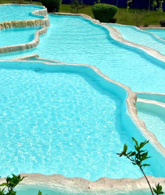 没想到景区里还挺大的,可以住宿~里面有很多个游泳池,“土耳其棉花堡”叠瀑是zui好看的,这里水温不高,现在这个天气去泡水,温度挺合适的!