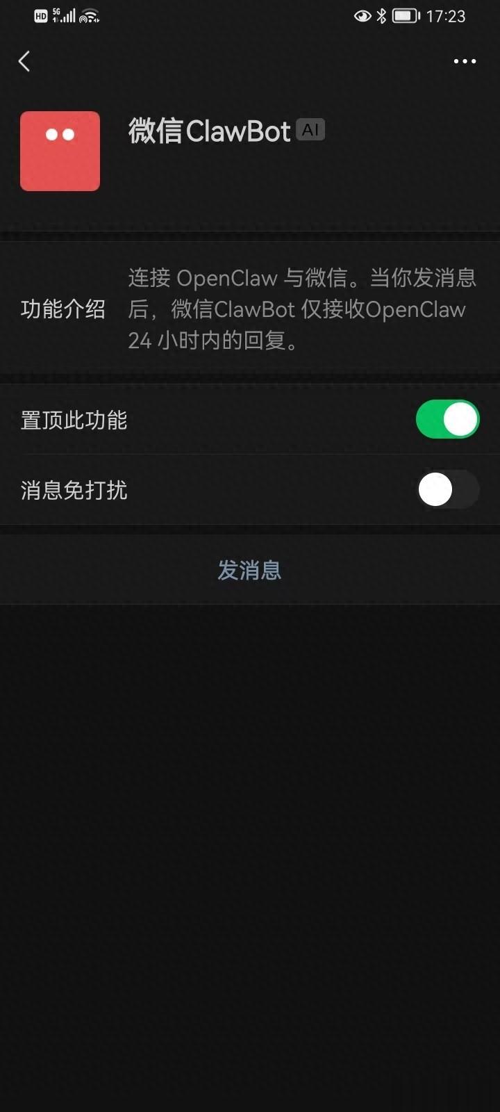 微信端:升级你的微信。安装clawbot插件。