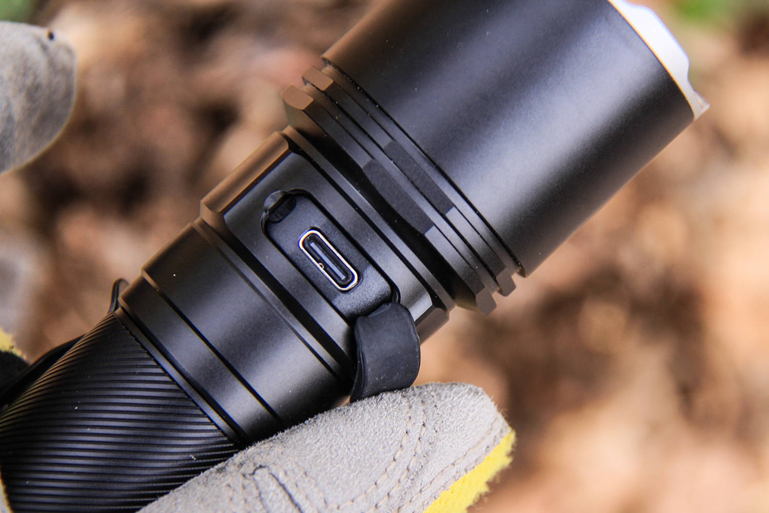 打开C7 Pro灯颈位置的橡胶封头,就能露出一个TYPE-C充电接口,接口边缘紧致工整,防尘胶塞回弹有力,在雨夜、泥泞甚至沙尘环境下,它都能牢牢锁住湿气,实现全天候抗造防护,为续航提供稳稳保障。