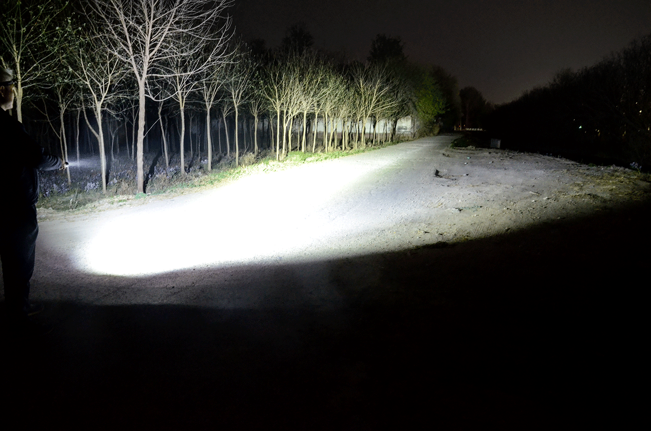 直线照明距离直达339米开外,从实际使用情况来看,小路的尽头大约为300米+,光线由近及远大范围铺开,将小路装满、延伸,直到视力所及,无不清晰展现眼前。