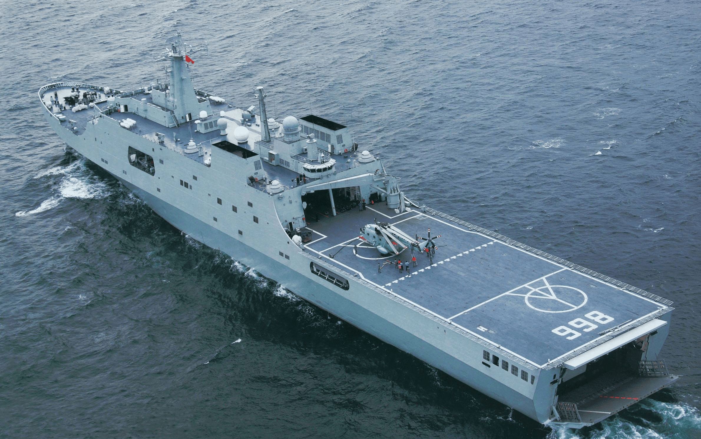 中国海军近日高调展示其最新技术突破:在国产071型综合登陆舰“四明山号”(986舰)上成功加装“燎原-1”型舰载激光武器系统。
