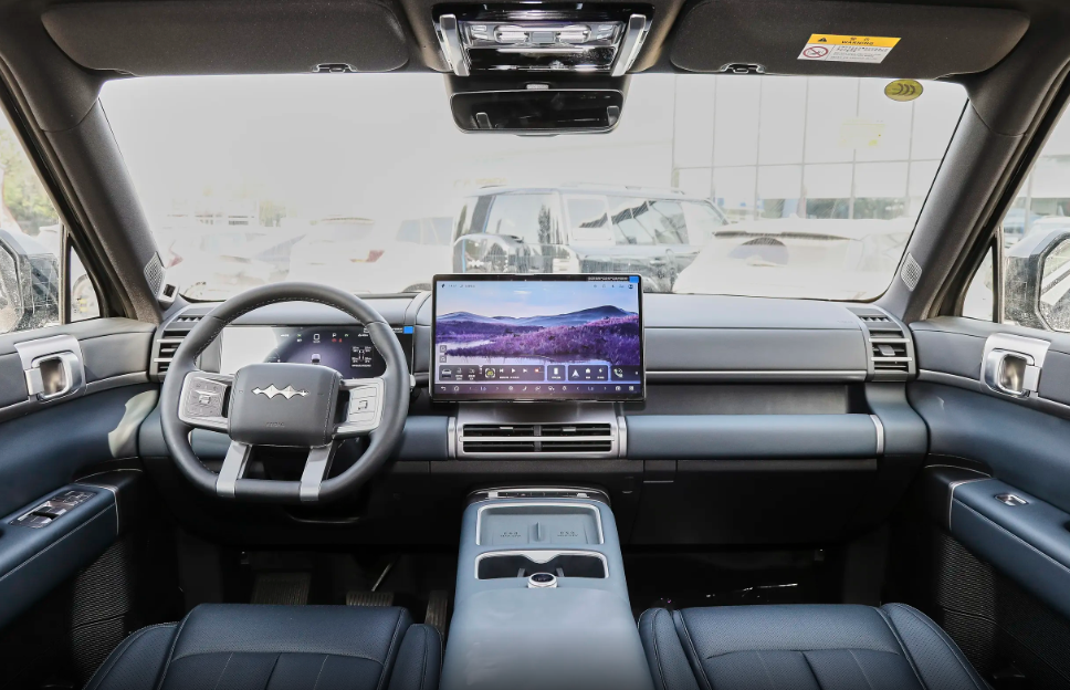 首先,就是备受欢迎的“方盒子”造型,方方正正的车身轮廓粗犷中透着精致,看着确实是很大气,车身长度4999mm,轴距2920mm,关于外观设计就不具体展开说明了,毕竟大家都很熟悉了,整体属于大部分消费者都能接受的那一类,尤其是对于年轻人来说更喜欢,驾驶着这样的一款车出行也挺有面子。内饰设计也是钛7 PHEV的一大亮点,看惯了市面上其他硬派越野车型,它的设计风格确实挺有个性,当然相比于豹系列,钛7 PHEV的内饰设计风格更偏向于家用。