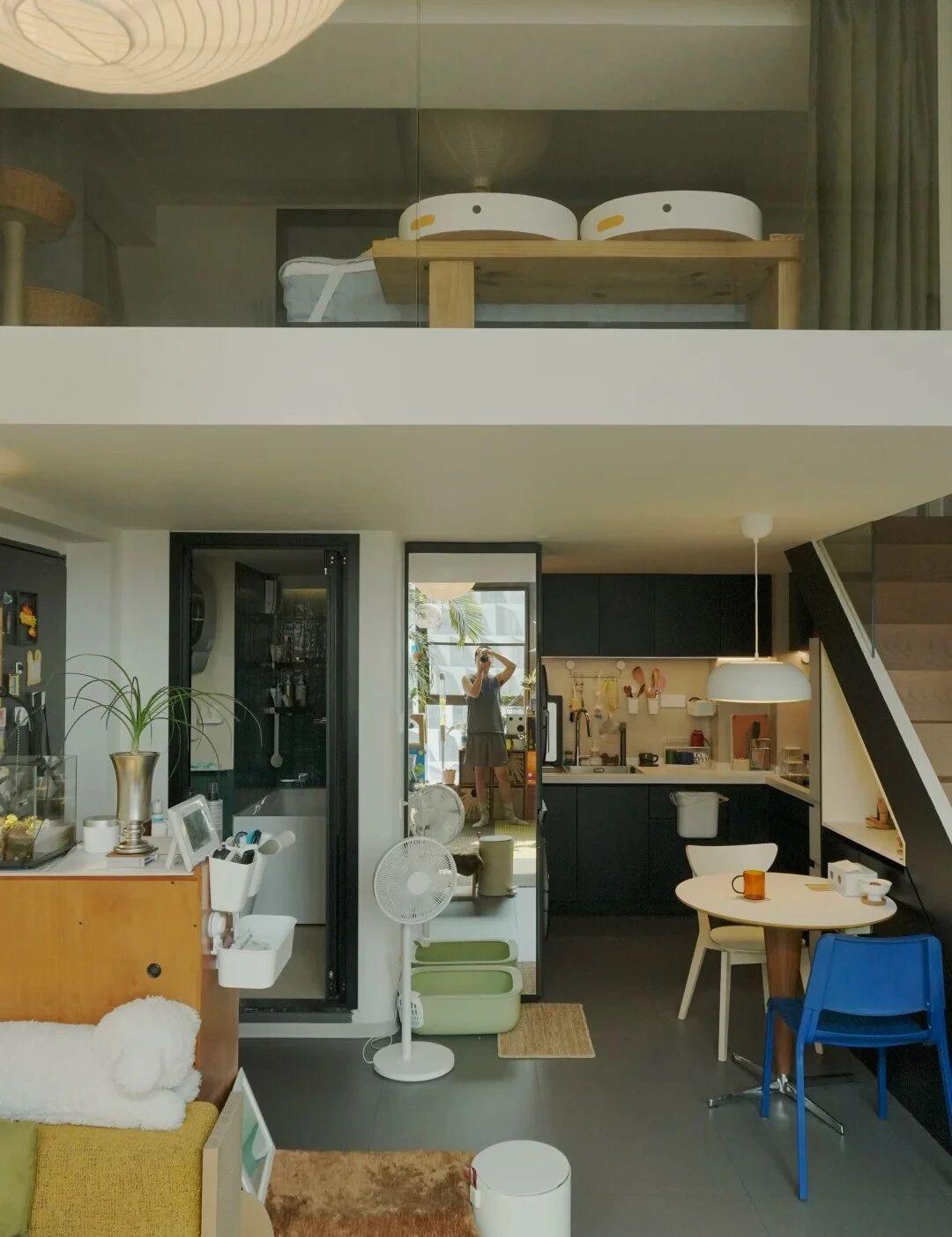 但是,她家的层高高啊,因此,可以直接将它一份为二,扩充后约 70 平,而且还赠送了一个十几平的仓库(1.5 米高),平时很多杂七杂八的物品,都可以堆积在里面;