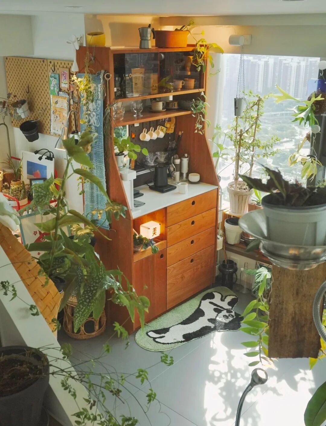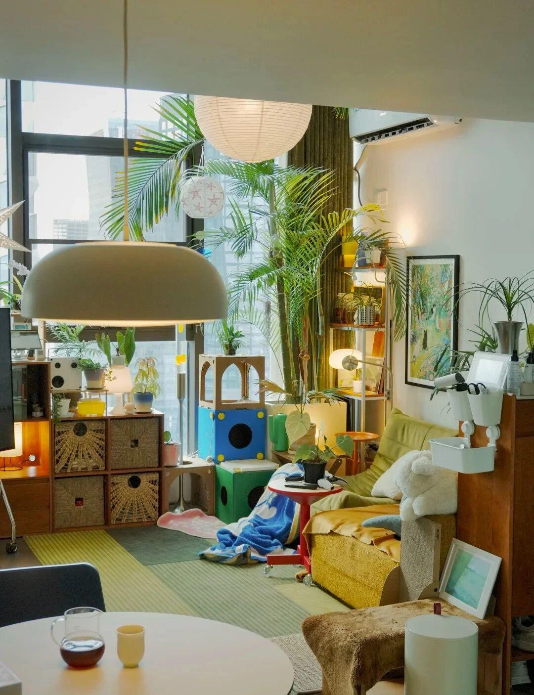 其实极繁的装修风格,更适合普通人,看看博主家的装修风格,一堆绿植、摆件,看着更有烟火气息,而且堆满喜欢的东西,反而更能容纳瑕疵,营造出松弛感。