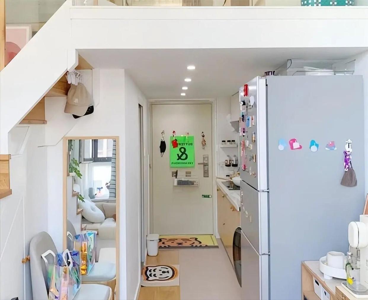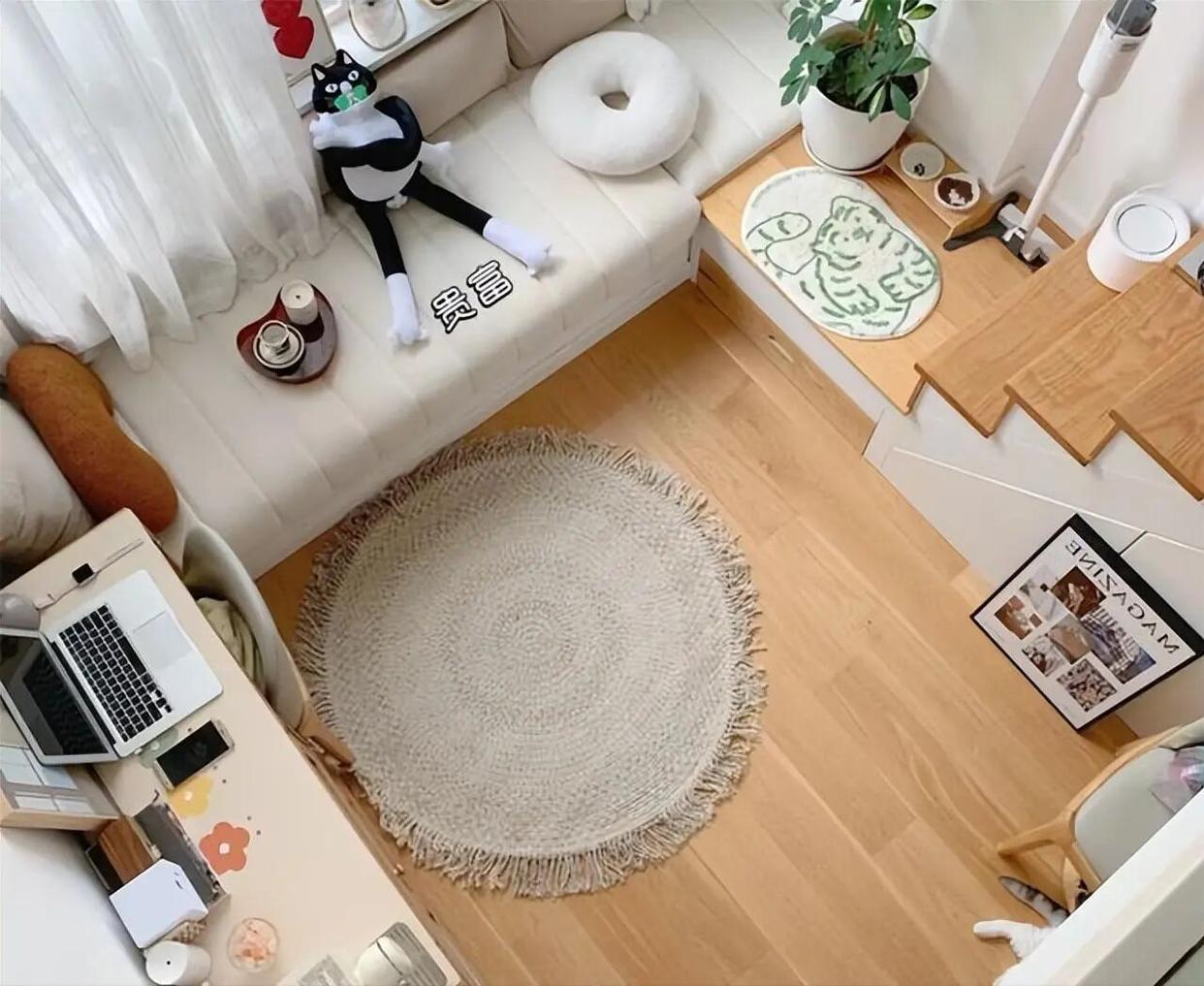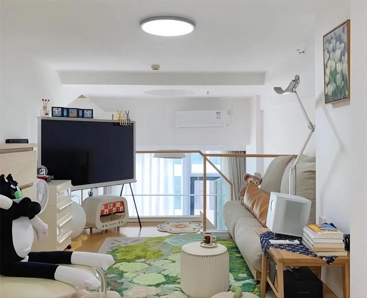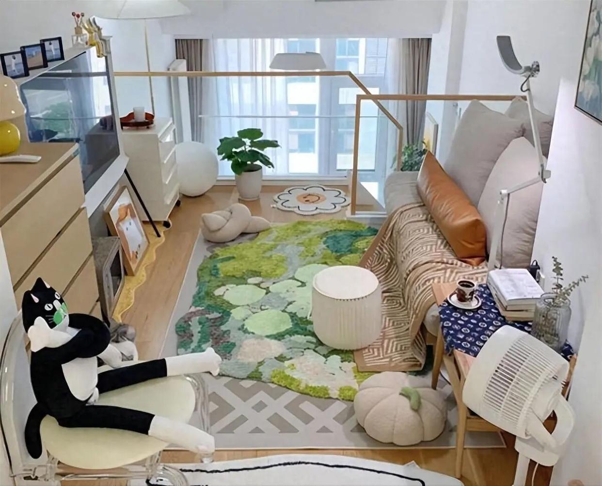 这个房子虽然小,但是,它层高比较足,所以可以在中部安装一个小阁楼,而且博主还特别选择了“双客厅”的格局,凭空造出一个“空中客厅”;